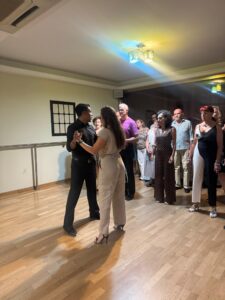 A pesar del intenso verano, las clases de milonga en Madrid se desarrollaron en dos fechas complementarias, los días 5 y 12 de agosto, y convocaron a parejas de Guadalajara, Rivas y demás zonas aledañas a Madrid. La nutrida concurrencia permitió a los participantes asimilar los contenidos, practicar entre sesiones y profundizar progresivamente en los conceptos trabajados.